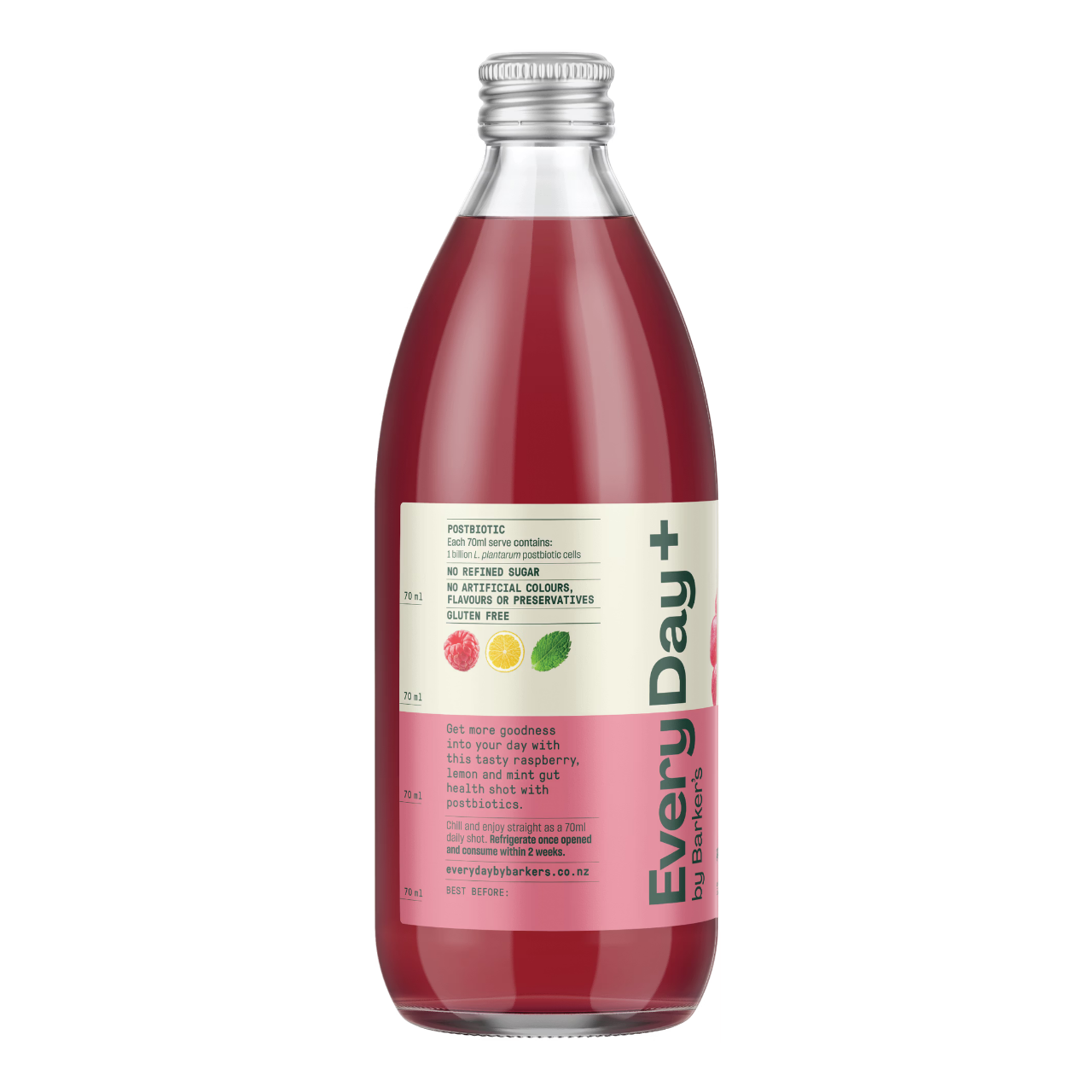 每日多啲健康活力!呢款美味嘅腸道健康小飲由紅桑莓、檸檬同薄荷製成,富含後生元。雪凍後直接享用,每日一小飲(70毫升),原汁原味。每一小飲含有10億株 L. plantarum 後生元細胞,有助促進腸道健康。